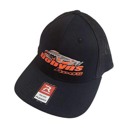 FlexFit Black with Black mesh Orange logo